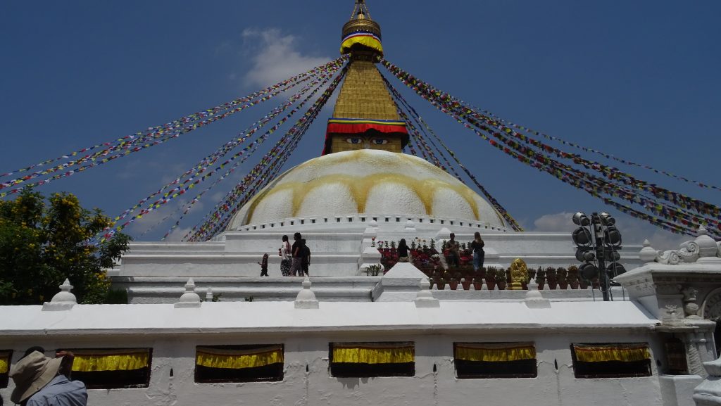 Also wettertechnisch gesehen habe ich wohl richtig Glück. In Indien war es zwar mega heiß, so um die 40°C, doch hier sind die Temperaturen sehr angenehm bei etwas über 25°C. Perfektes Wetter für einen ausgedehnten Stadtbummel. Die Hauptstadt Kathmandu liegt in einem weitem Talkessel von etwa 30 km Durchmesser. Also wirklich Berge kann ich von hier aus kaum sehen. Was ich sehen kann, sind die Hügel. Und da die Stadt immer größer wird, derzeit hat sie im Großraum bereits 2 Millionen Einwohner, steigt auch der Smog, sodass die Sicht noch mehr eingeschränkt ist. Aber ich bin ja nicht hier, um Berge zu sehen. Zumindest nicht nur. Eigentlich ist das ganze alte Stadtzentrum UNESCO Welterbe, denn hier sind so viele alte Tempel, daß es mich wirklich geflasht hat. Der Hauptplatz vor dem alten Königspalast ist der interessanteste, denn hier stammen die meisten der Gebäude, also Tempel, aus dem 16. und 17. Jahrhundert. Trotz der vielen Erdbeben hier, sind sie noch in gutem Zustand. Aber es sind auch schon viele zerstört worden. Man kann aber noch sehr gute die Schnitzereien an den 400 Jahre alten Balken sehen. Sie sind so filigran und kunstfertig ausgeführt, daß ist schon sehr bemerkenswert. Natürlich sind die Hauptgötter Shiva, Vishnu, Brahma, Krishna und Ganesh hier am häufigsten dargestellt. Aber auch Drachen und Schlangen. Ich glaube, ich habe noch nie so viele Tempel auf einem Flecken gesehen. Es waren immernoch viele Touristen unterwegs, doch hin und wieder kreuzte auch ein Mönch unseren Weg. Mein privater Tourguide erzählte mir so viel über alle die Götter, die Geschichte und Kultur, dass ich kaum die Hälfte behalten habe. Es war wirklich mega beeindruckend. Der zweite Ort auf der Tagesordnung war der ausgedehnten Shiva Tempelkomplex Pashupatinath. Dort sah ich einen uralten Baum, der durch einen kleinen Tempel gewachsen ist. Der Baumstamm und die Wurzeln haben die Steine des Tempels derart verschoben, daß er kaum noch zu erkennen ist. Wirklich unglaublich. Viele dieser Tempel sind über 2000 Jahre alt. Dieser Ort wird geteilt durch den kleinen Fluss Bagmati, an dessen Ufern öffentliche Leichenverbrennungen stattfinden. So auch heute. Anders als in Europa ist dies hier eine sehr offene und öffentliche Zeremonie. Mein Stadtführer führte mich an das gegenüberliegende Ufer und erzählte mir alles Wissenswerte darüber. Allerdings fühlte ich mich dabei doch irgendwie fehl am Platze. Wir sahen also zu, wie ein Verstorbener für die Verbrennung vorbereitet wurde, während ein anderes Feuer bereits kräftig brannte und qualmte. Zum Glück waren wir weit genug weg, als daß ich die Leiche wirklich gut sehen konnte. Makaber, dies als Sightseeing Hotspot zu verkaufen. Wenigstens nach unserem westeuropäischen Verständnis eine sehr befremdliche Situation. Das nächste Highlight gefiel mir dagegen sehr viel besser, denn es ging zu einem der ältesten buddhistischen Tempeln der Welt (2500 Jahre), dem Swayambhunath. Diesen wollte ich hier unbedingt sehen und es hat sich gelohnt. Übrigens wird er wegen der viel wilden Affen in der Gegend auch Affen Tempel genannt. Also alles in allem ein wirklich ereignisreicher Tag. Schließlich führte mich mein Guide zu einem wirklich coolen Hostel mit Dachgarten, von wo man eine hervorragende Aussicht hatte. Allerdings war der Weg zurück zu meinem Hotel dann etwas schwierig, aber ich hab’s gefunden. Er hatte mir diese Bar auf dem Dach empfohlen, da man dort sowohl die Aussicht als auch Marihuana genießen kann. Naja, die Aussicht hat mir gereicht. Nun werde ich wohl gleich noch mal lostigern, um zum Abend noch etwas zum Dinner zu bekommen. Morgen gibt’s auch noch was zu sehen! Ich bin gespannt.